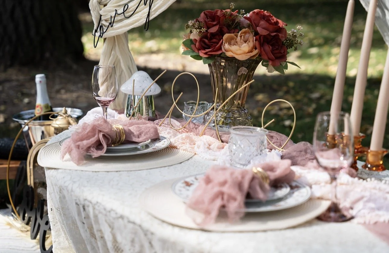 Our signature Golden Hour Theme brings a warm, light, and dreamy feel to all occasions. Full of pinks, gold, orange, peach, and copper colors to bring the sunset and golden hour sky to life.